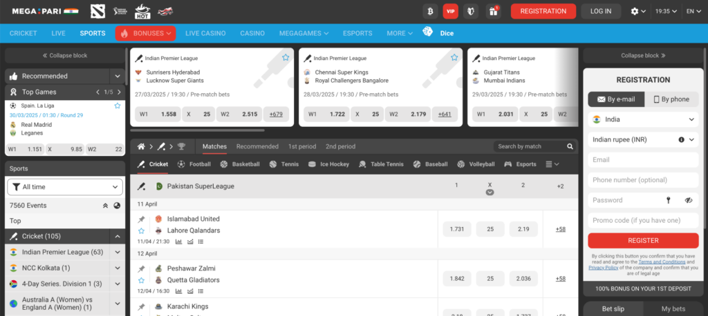 The selection of activities offered by Megapari is impressive. The bookie pays special attention to sports that are popular across India—cricket, football, kabaddi, and more. In addition, there are dozens of other disciplines to suit all tastes, including rare ones like bandy, lacrosse, and pro wrestling. If you’re new to Megapari or just considering where to start, explore the exciting opportunities available after registering.